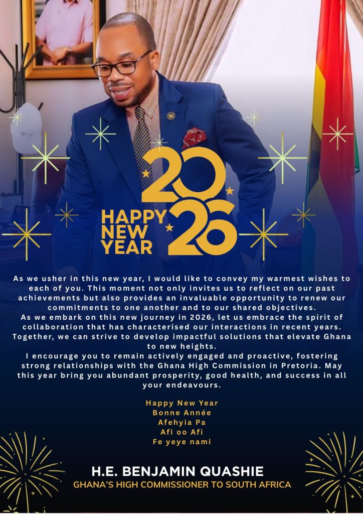 On the eve of 31st December 2025, His Excellency Benjamin Anani Quashie, the High Commissioner of Ghana to South Africa,…